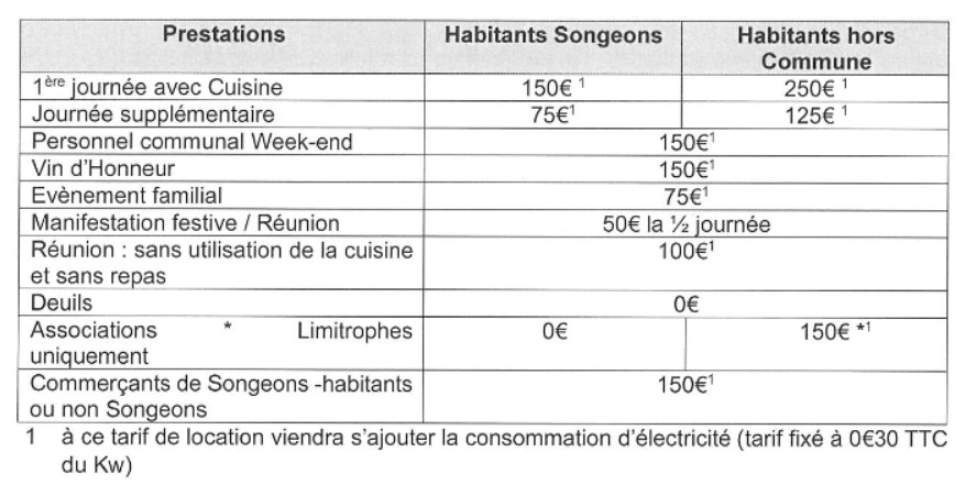 La commune de SONGEONS ne possède pas de vaisselle dans sa salle, mais l'Association Familiale assure cette prestation. Vous pouvez contacter Mme FRION au 03.44.82.74.55.